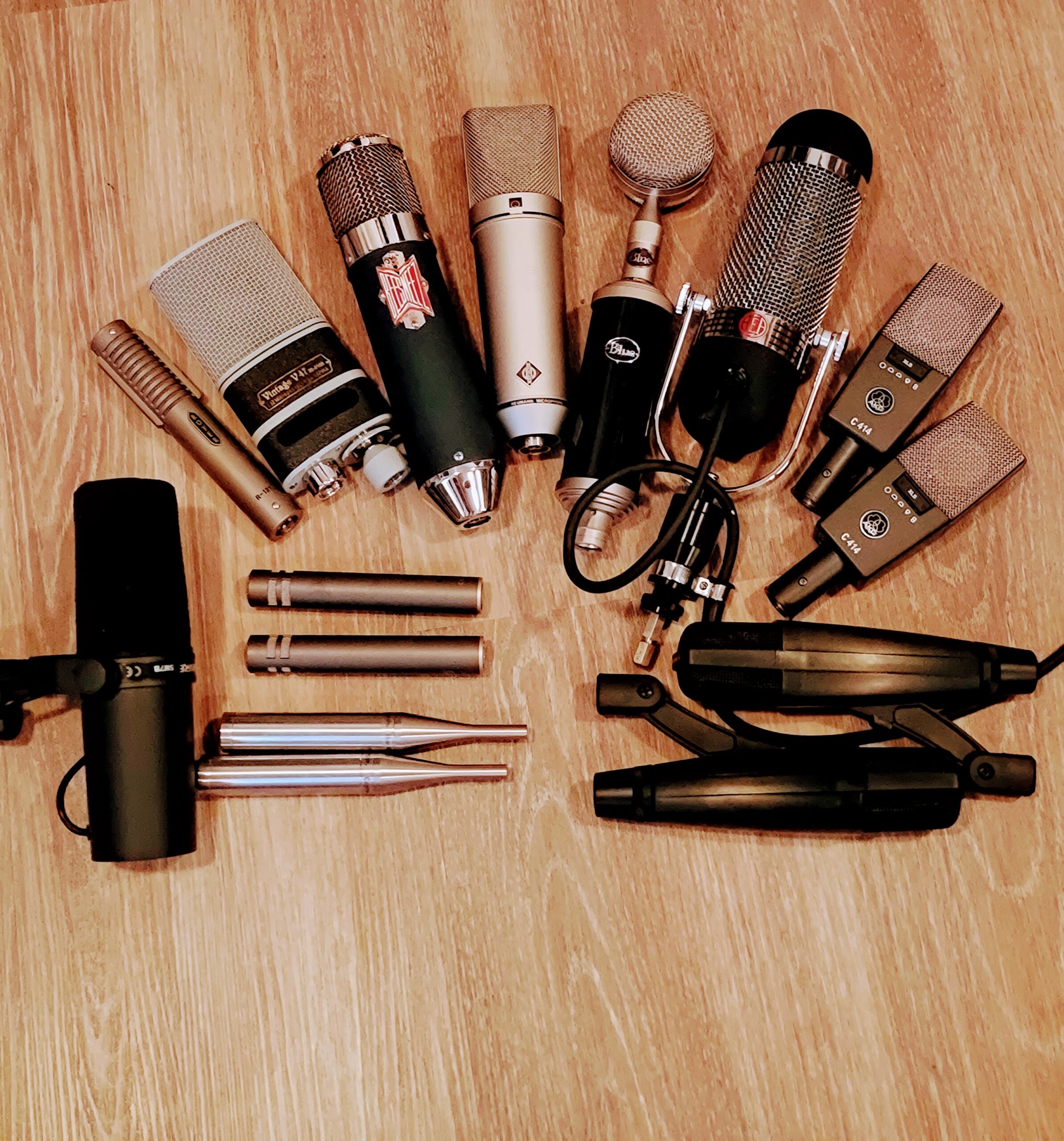 Neumann U87, AKG 414s, Gefells, JZ, Earthworks, Royer, and AEA for starters. Oh, and a bunch of 57s.