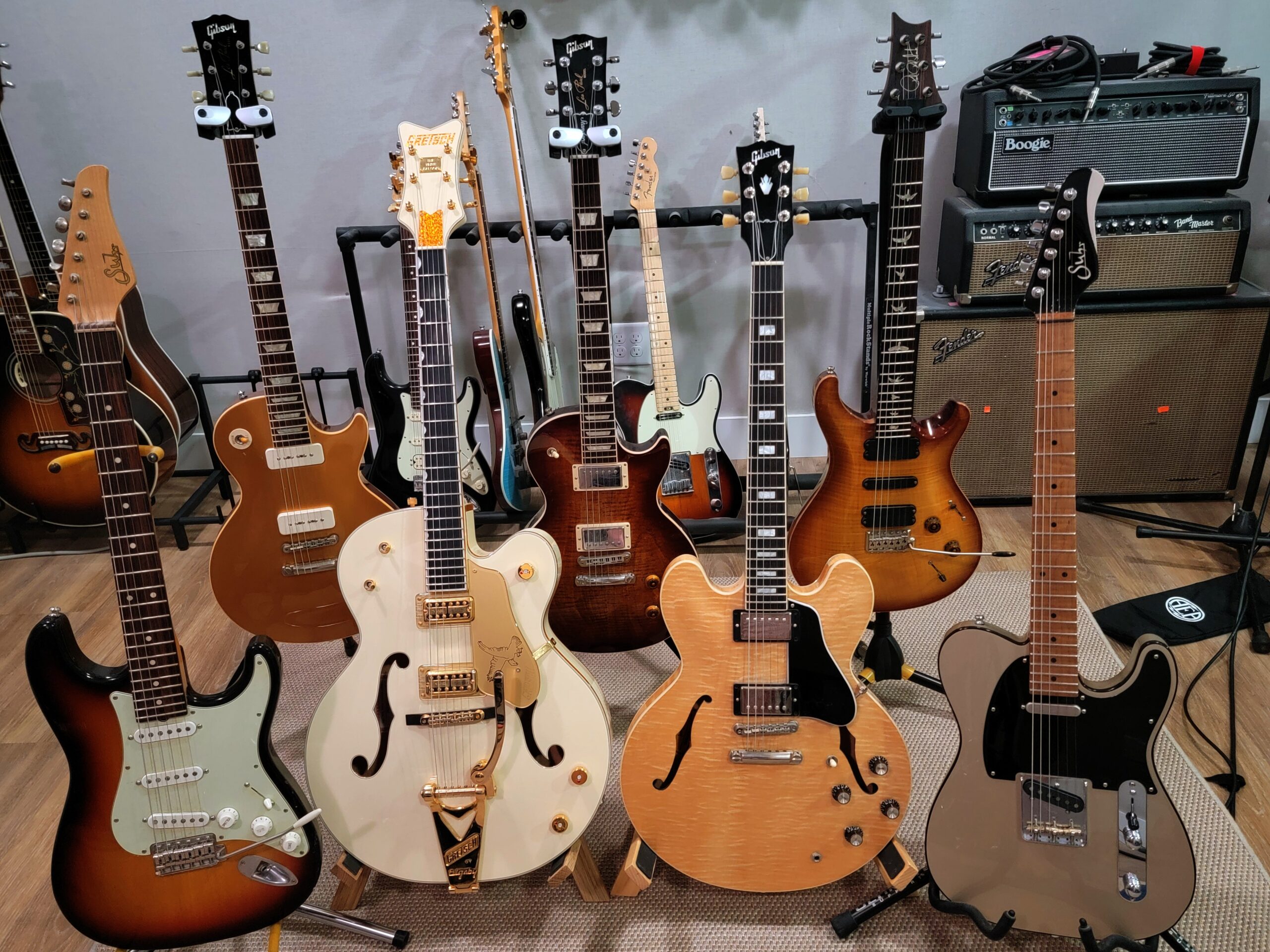 Guitars by Fender, Gibson, PRS, Suhr, and more. And don’t forget the White Falcon.